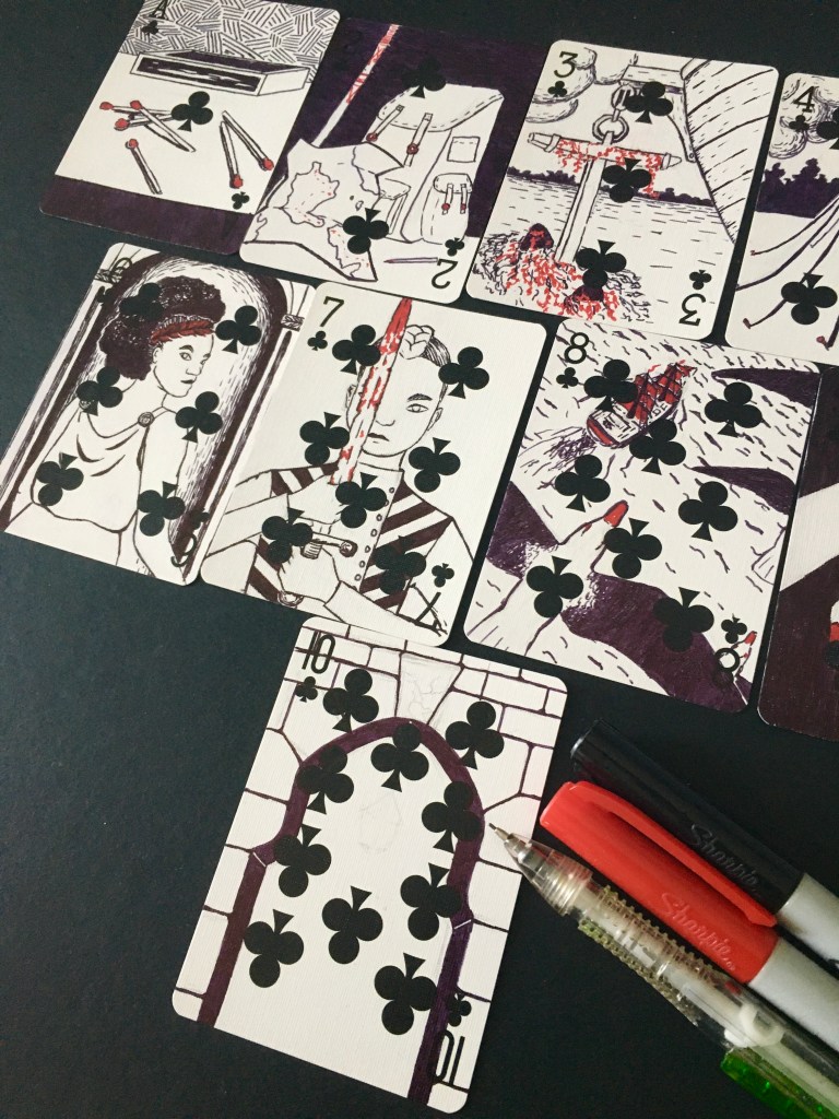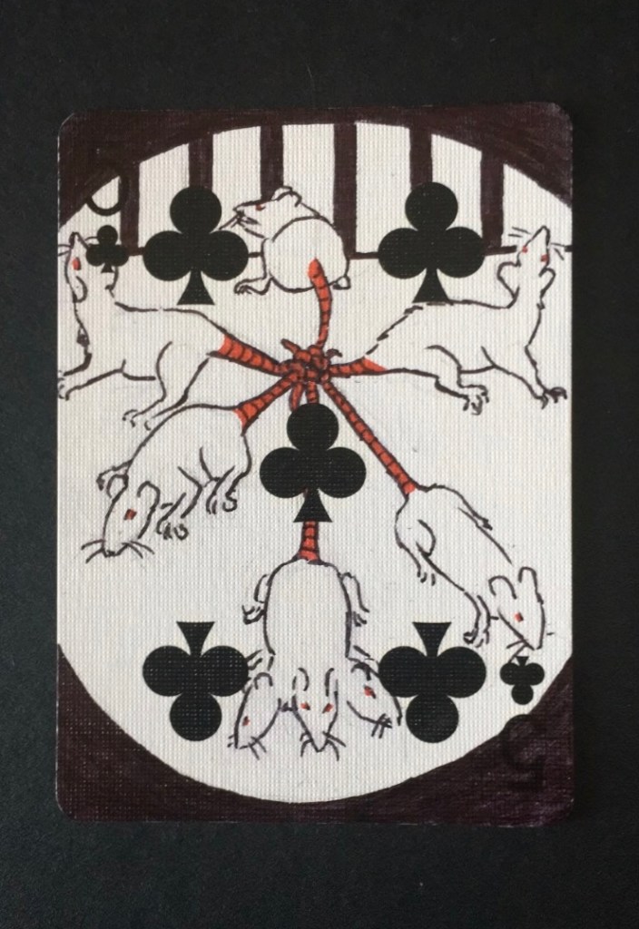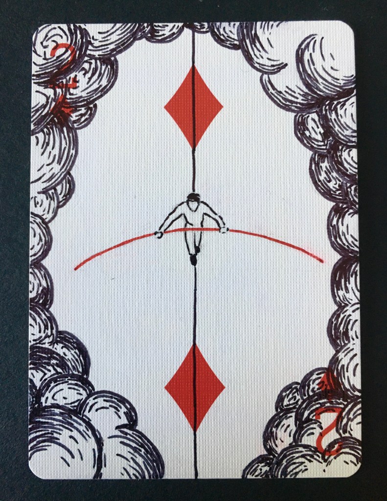 I began working on the Playing Card Tarot during the 2020 lockdowns. This project involves illustrating a tarot deck over a deck of playing cards. One of the cards was selected for inclusion in the Alleyman’s Tarot Deck.